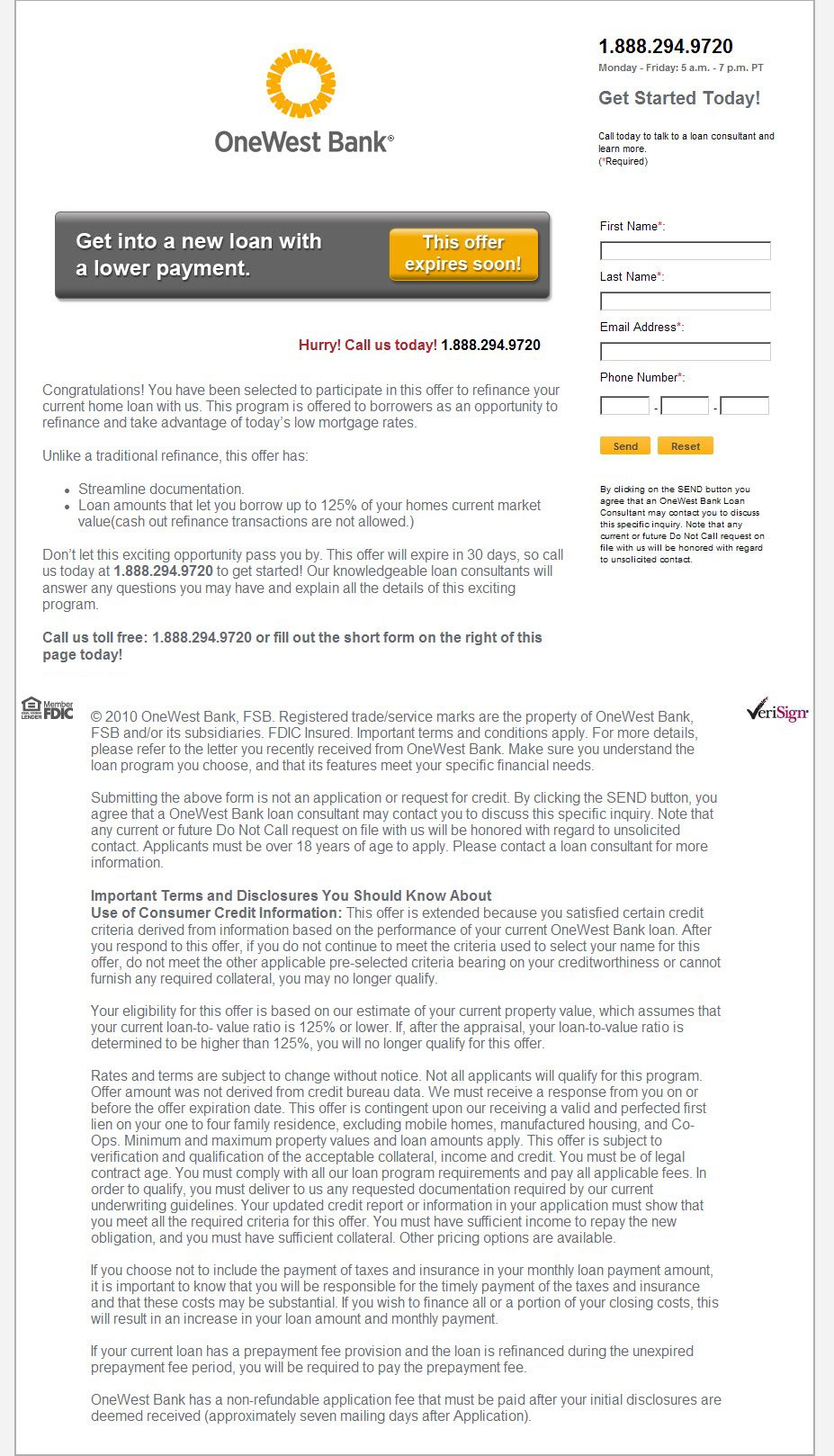 As part of our marketing efforts at OneWest bank we created several product landing pages and emails.