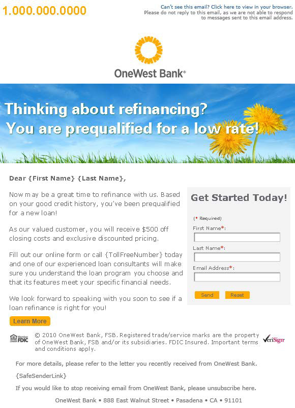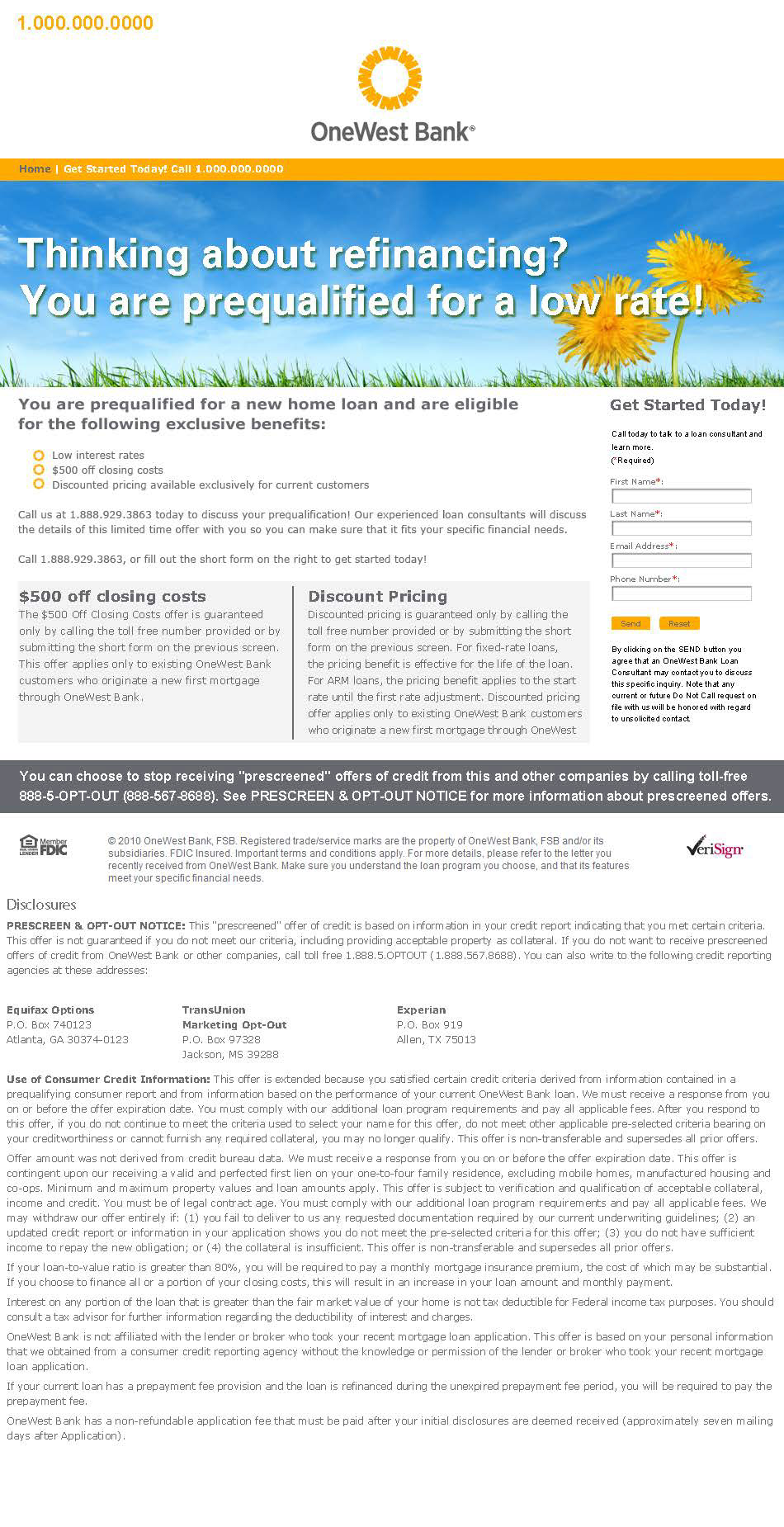 As part of our marketing efforts at OneWest bank we created several product landing pages and emails.